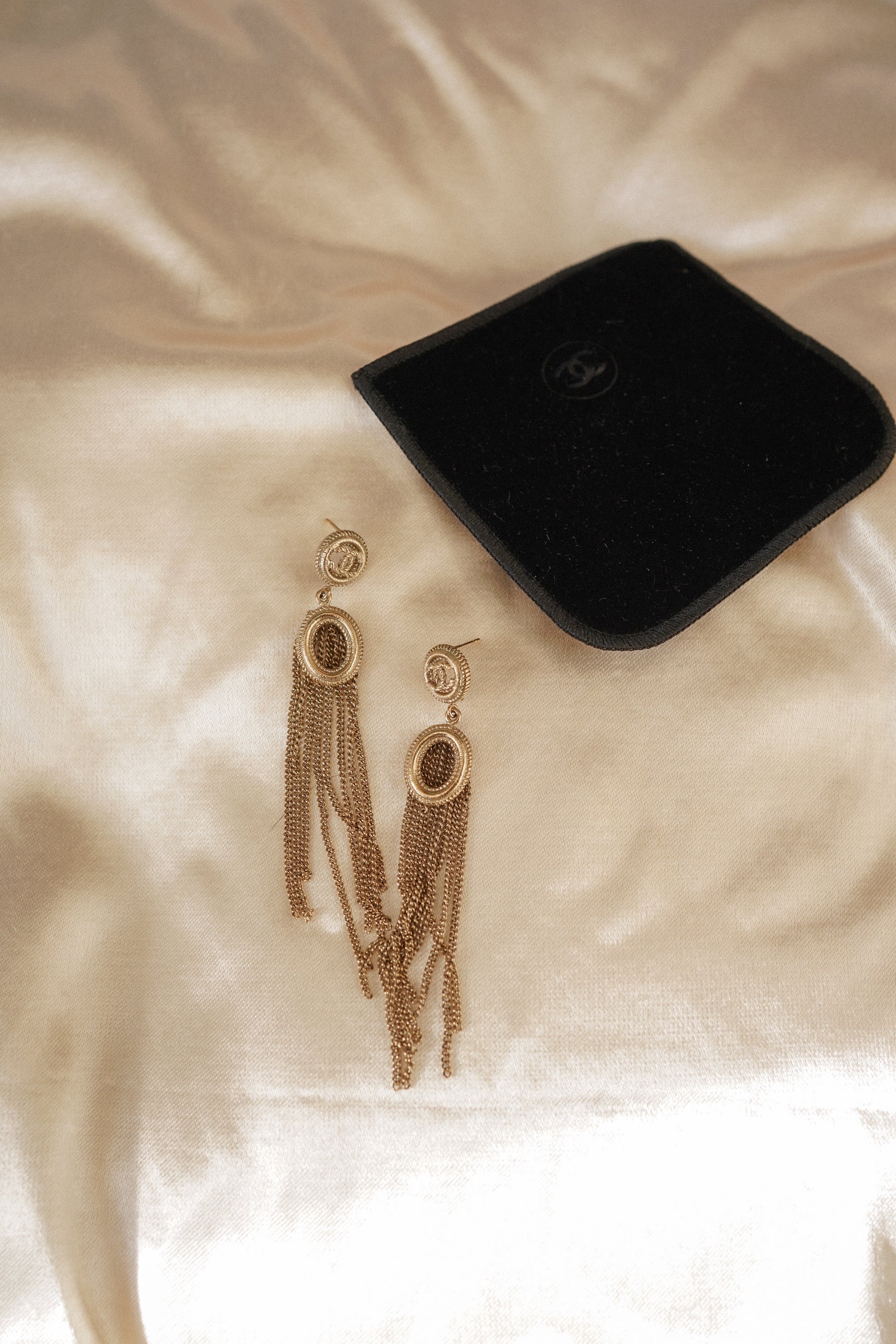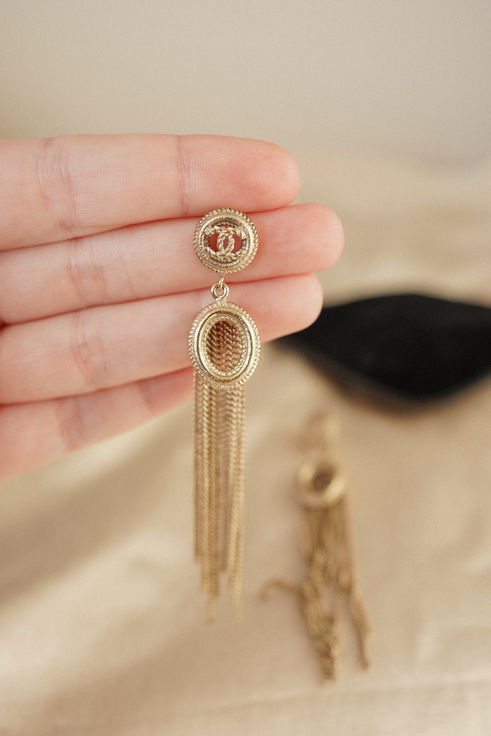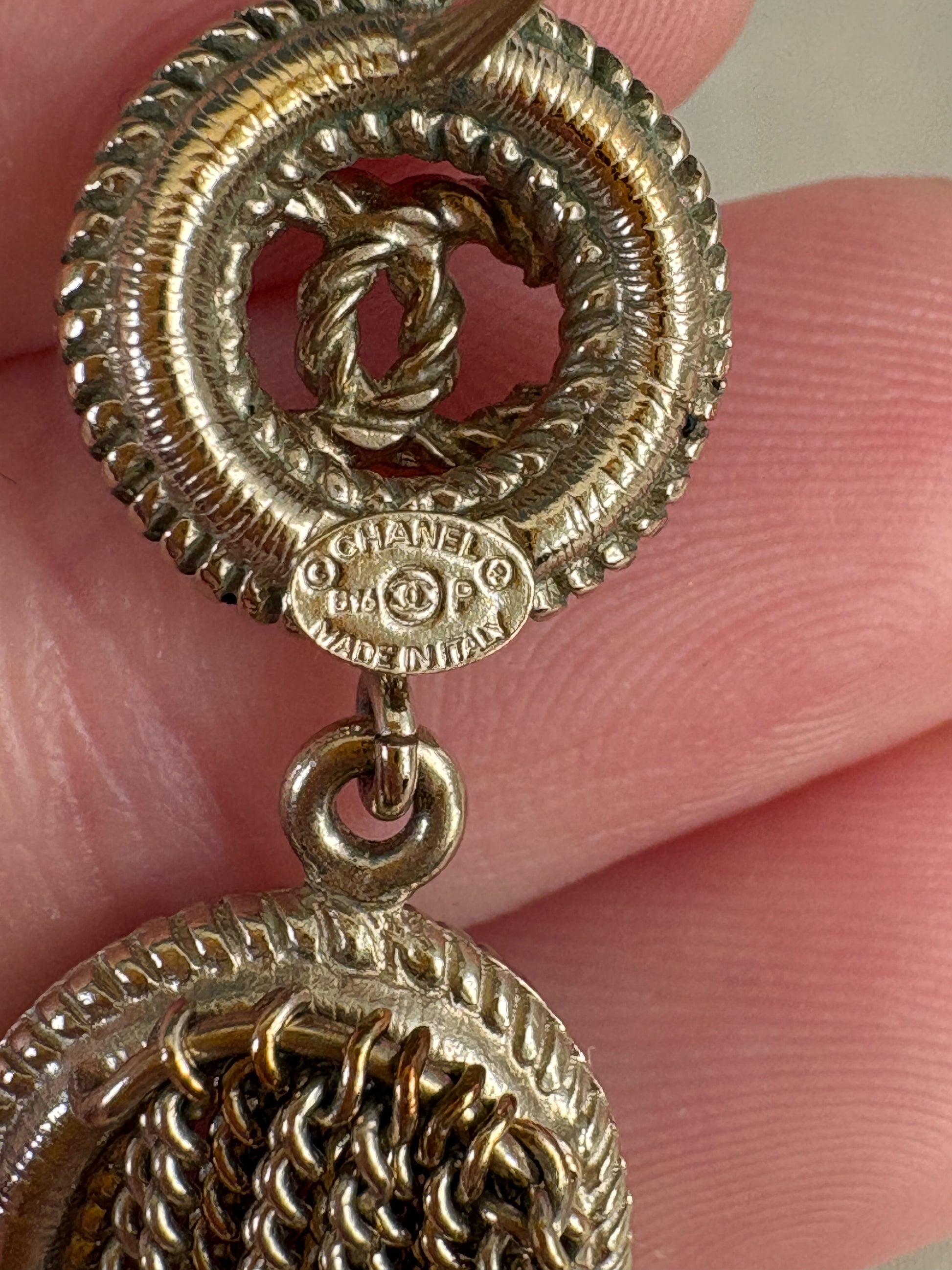 CHANEL Rope Medallion Tassel Earrings — B16 Pre-Fall 2016 — With Pouch