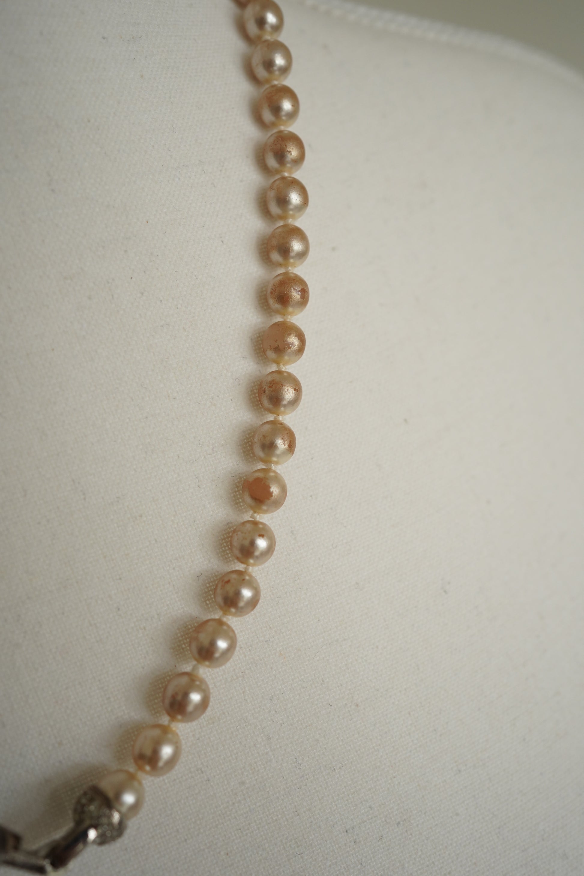 CONDITION: Fair vintage condition with heavy patina to clasp and heavy surface wear to pearls, consistent with age and use. Selling as is.
