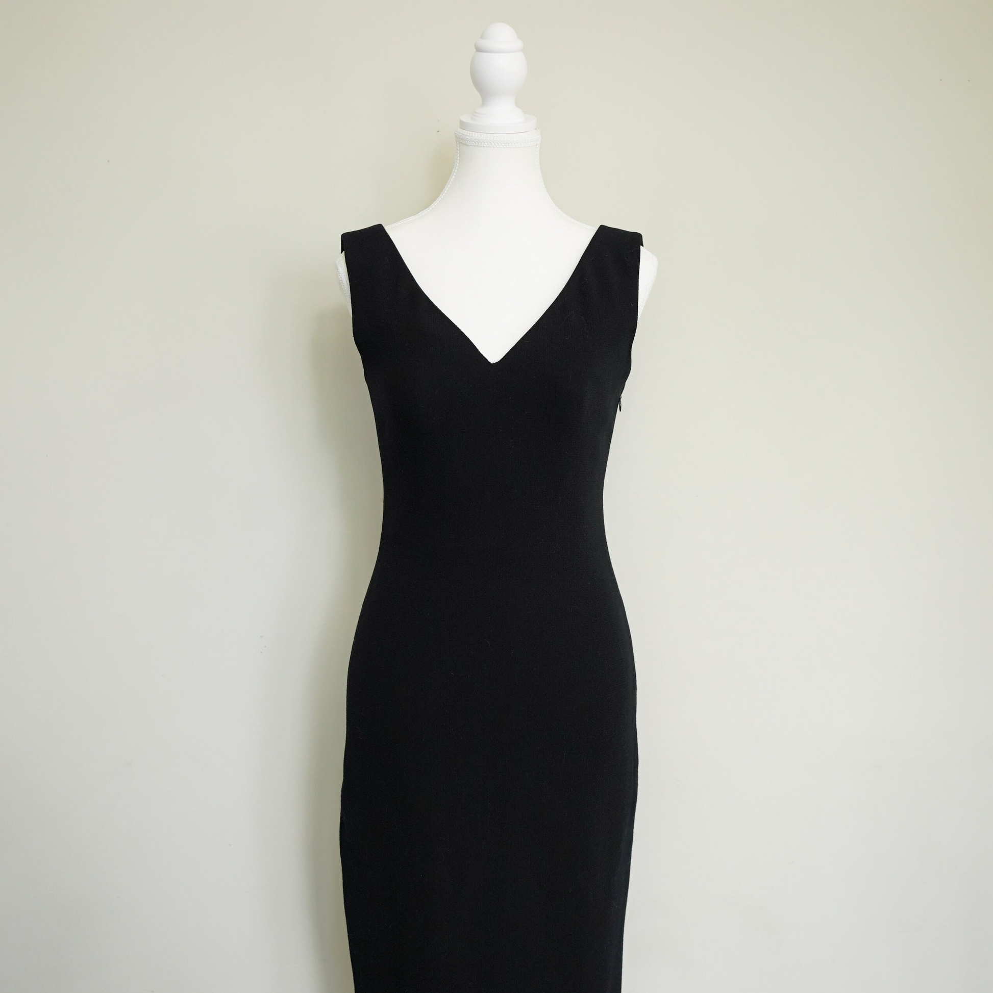 Made in Italy from a luxe heavy wool crepe and fully lined in rayon, the dress balances sharp tailoring with elegant simplicity. A true collectible piece that feels modern, refined, and timeless.